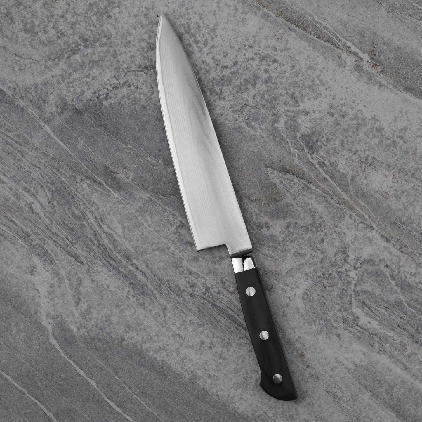 Šéfkuchařský nůž je základním nožem každého kuchaře ; lze jej použít ke krájení masa, ryb, ovoce a zeleniny. Tento 20 cm dlouhý nůž je určen pro začátečníky i profesionály. Gyuto této délky může být jistě první volbou na vaší cestě za nožem.