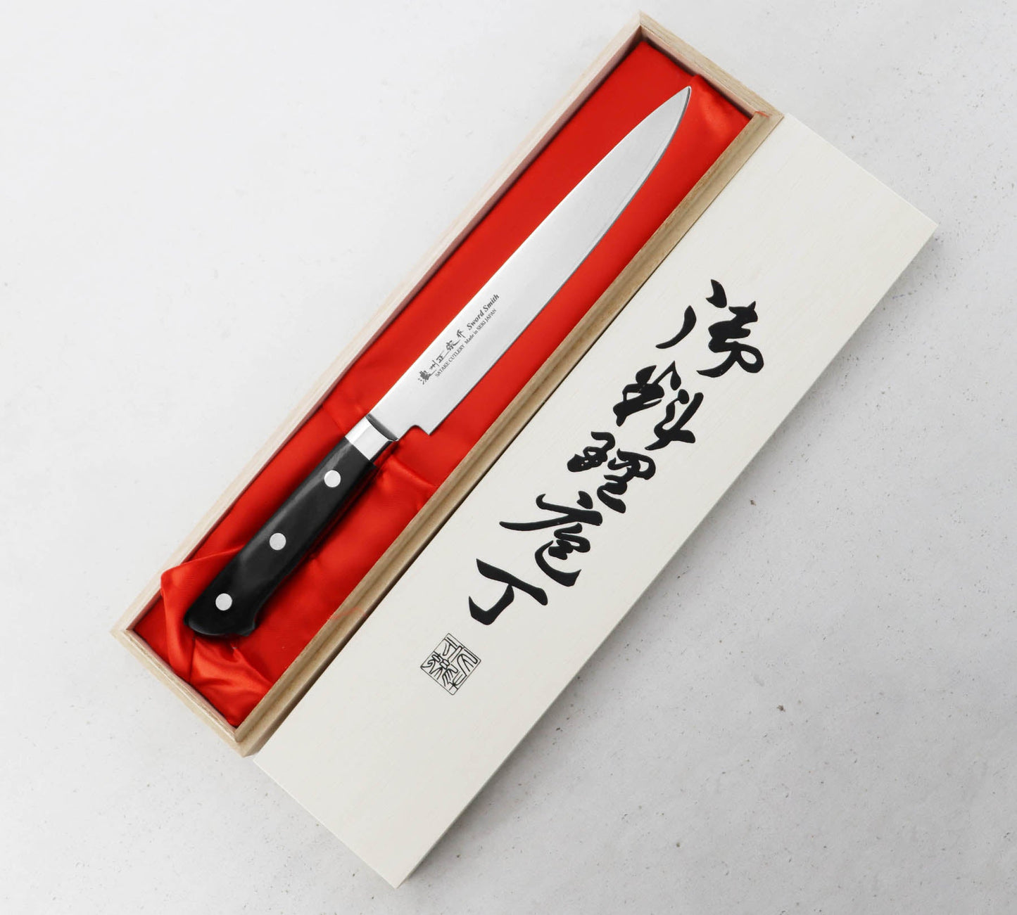 Představujeme japonský kuchyňský nůž Masamune ze série Daichi. Tento nůž vám umožní snadno krájet a oddělovat velké porce masa a také oddělovat maso od kostí. Tento nůž je ideální pro servírování křehkého krůtího, jehněčího masa nebo pečené šunky.