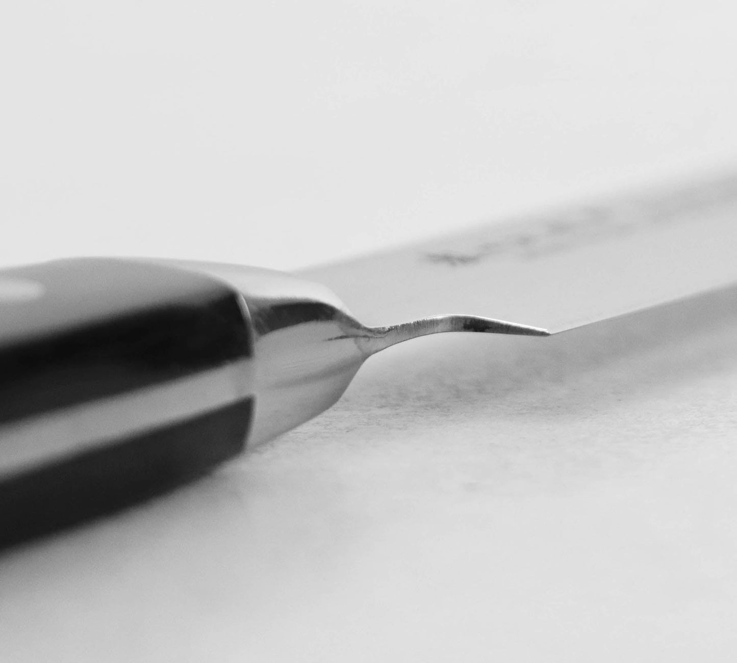- Při řezání používáme příliš velkou sílu, což způsobuje mikroodštěpení na čepeli
