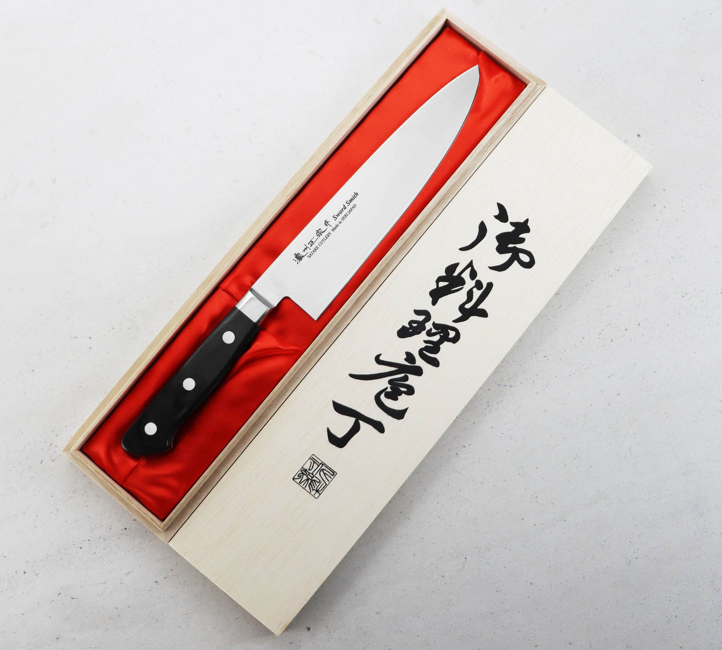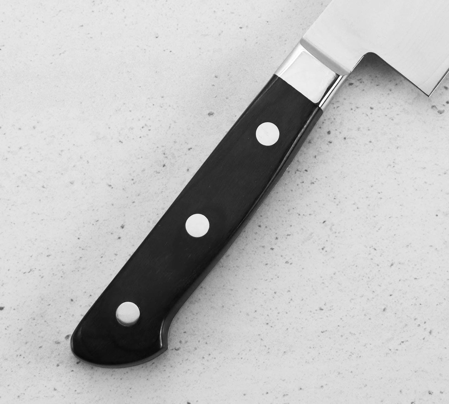 Představujeme japonský kuchyňský nůž Masamune ze série Daichi, který je ideální pro krájení masa, ryb, zeleniny a ovoce. Jeho velikost čepele je ideální pro krájení velkých kusů, jako je meloun nebo zelí. Je perfektní pro každodenní kuchyňské úkony.
