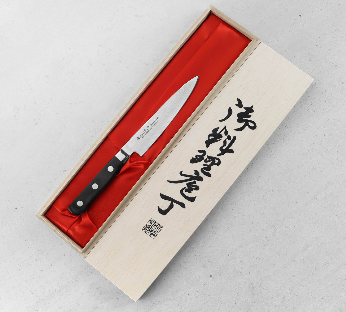 Představujeme japonský nůž Masamune ze série Daichi. Je ideální pro krájení malých a středně velkých kusů a díky své velikosti je vhodný i pro loupání ovoce a zeleniny. Tento všestranný kuchyňský nůž dokáže úspěšně nahradit dlouhý šéfkuchařský nůž, když se stane nepraktickým. Je perfektní pro každodenní kuchyňské úkony.
