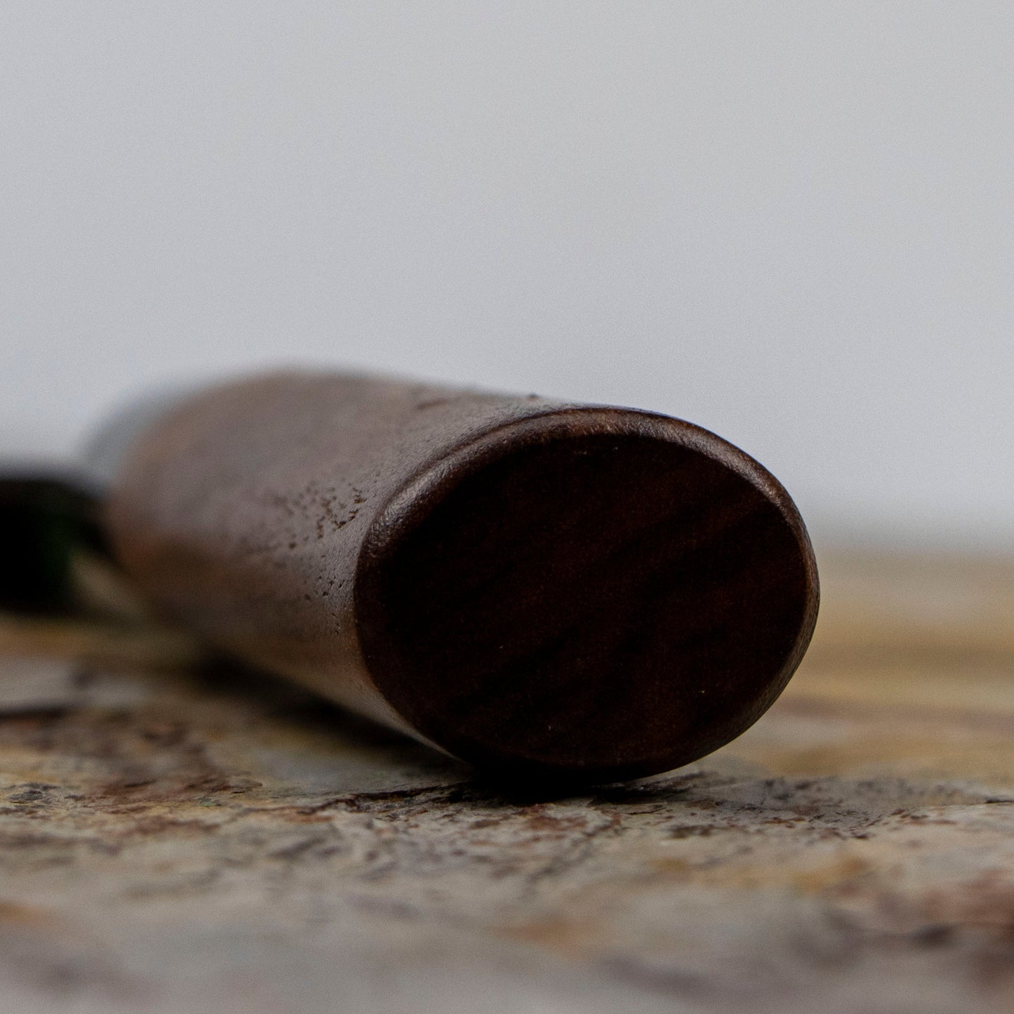 - Rukojeť: ořechové dřevo, plastový kroužek