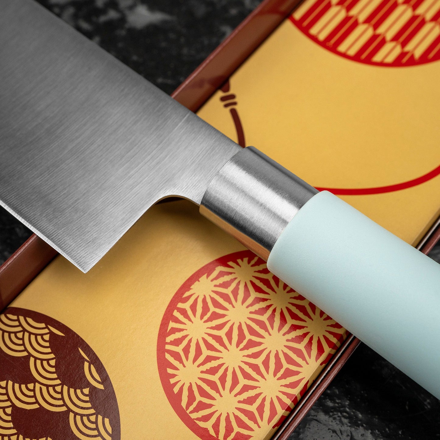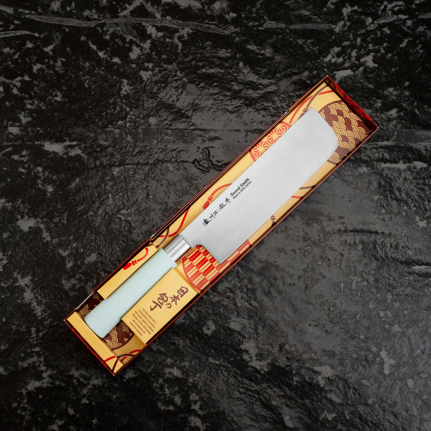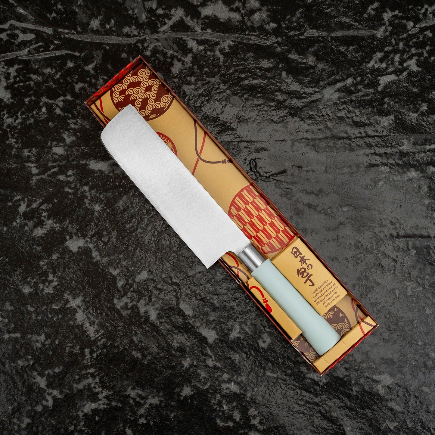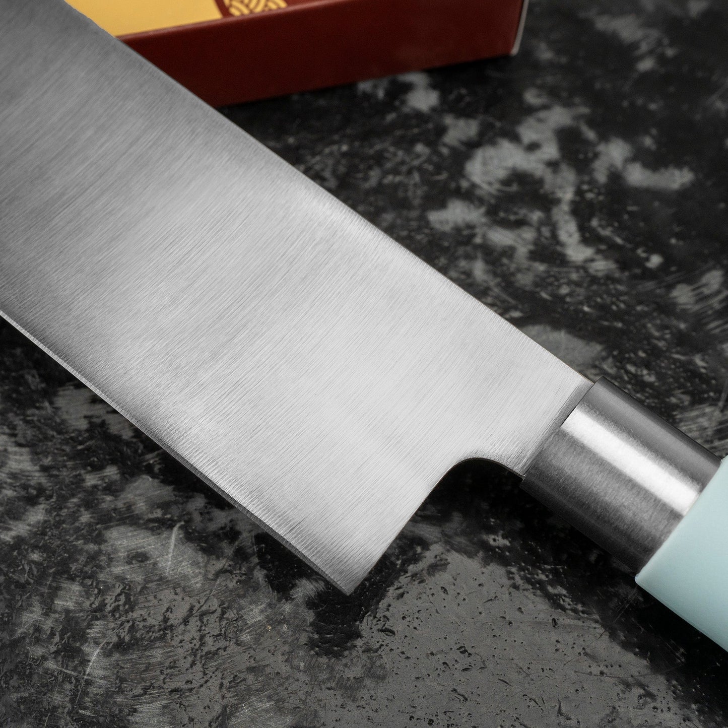 Japonský nůž ze série Macaron, určený pro krájení zeleniny a bylinek. Jeho obdélníková čepel usnadňuje manipulaci s krájenými surovinami. Rovná ostří umožňuje vertikální krájení a umožňuje různé techniky, jako je julienne nebo chiffonade.