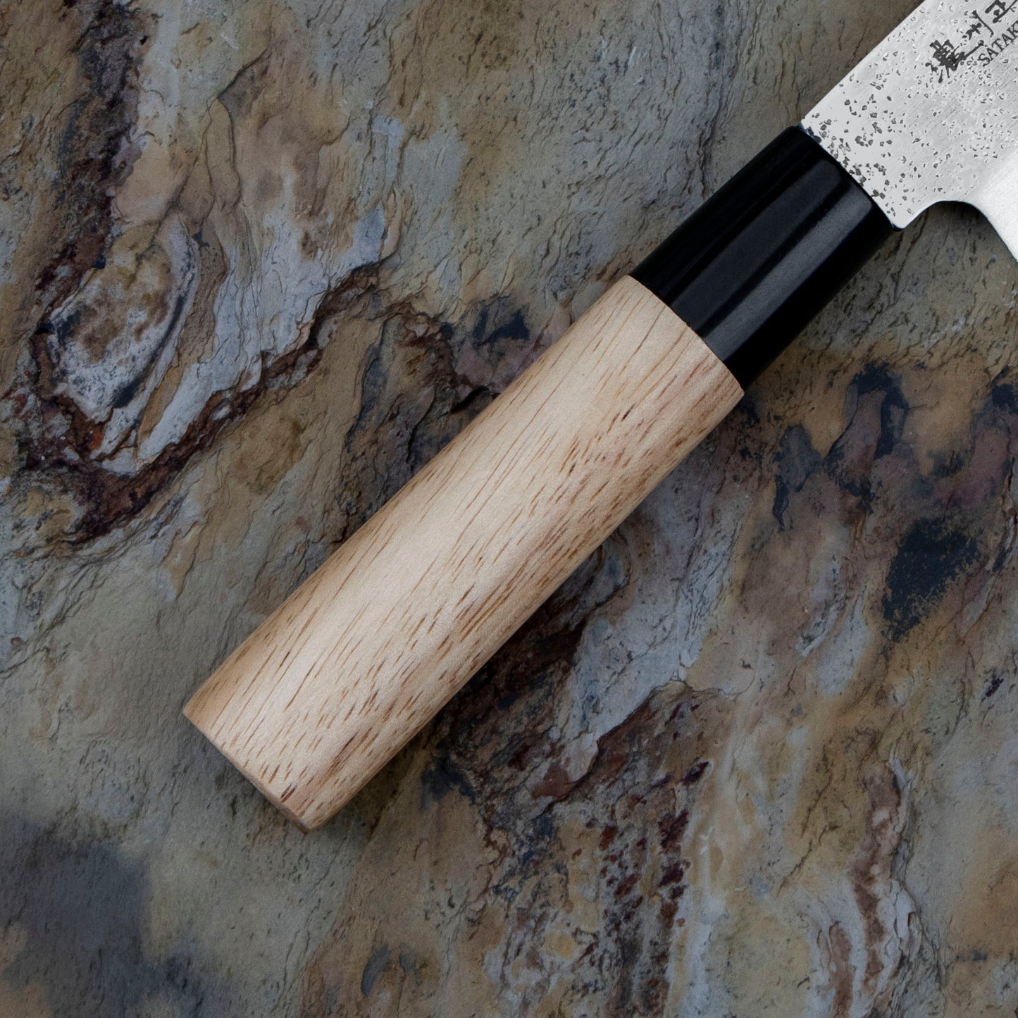 Představujeme univerzální japonský nůž Masamune. Je ideální pro krájení malých a středně velkých kusů a díky své velikosti je vhodný i pro loupání ovoce a zeleniny. Tento všestranný kuchyňský nůž, ideální pro každodenní kuchyňské úkony, dokáže úspěšně nahradit dlouhý šéfkuchařský nůž, když se stane nepraktickým.