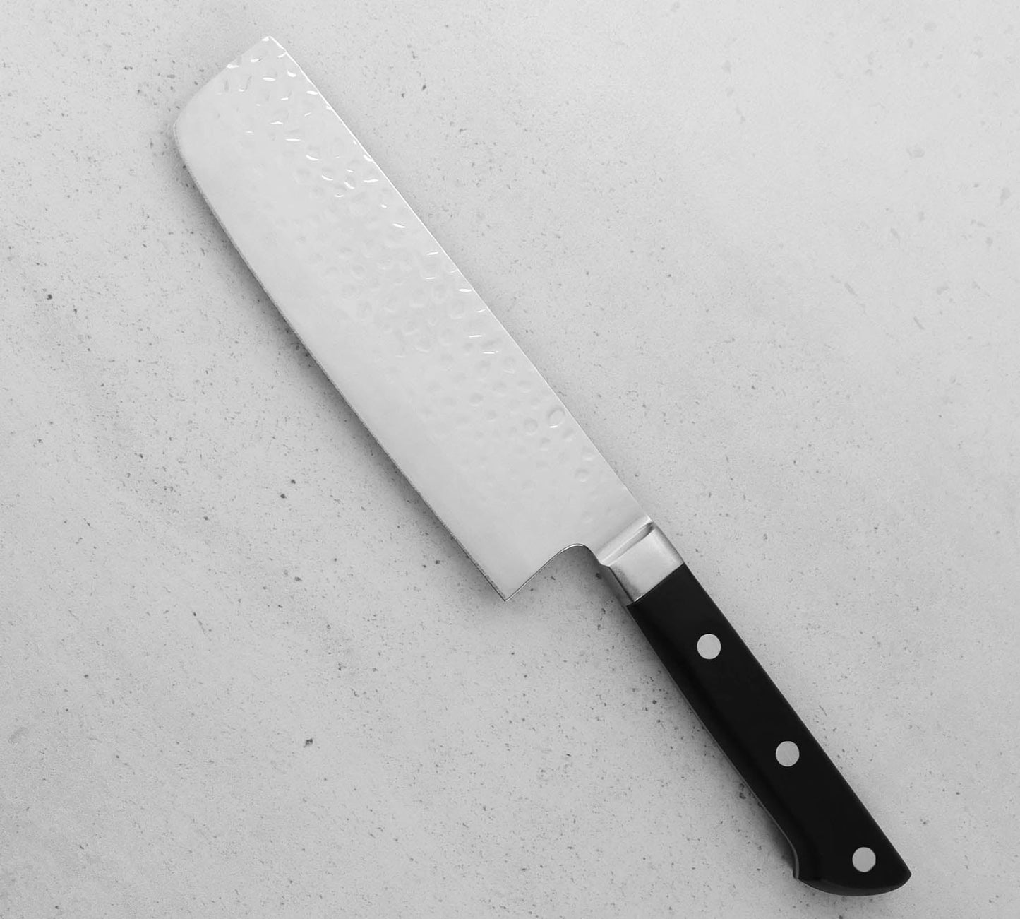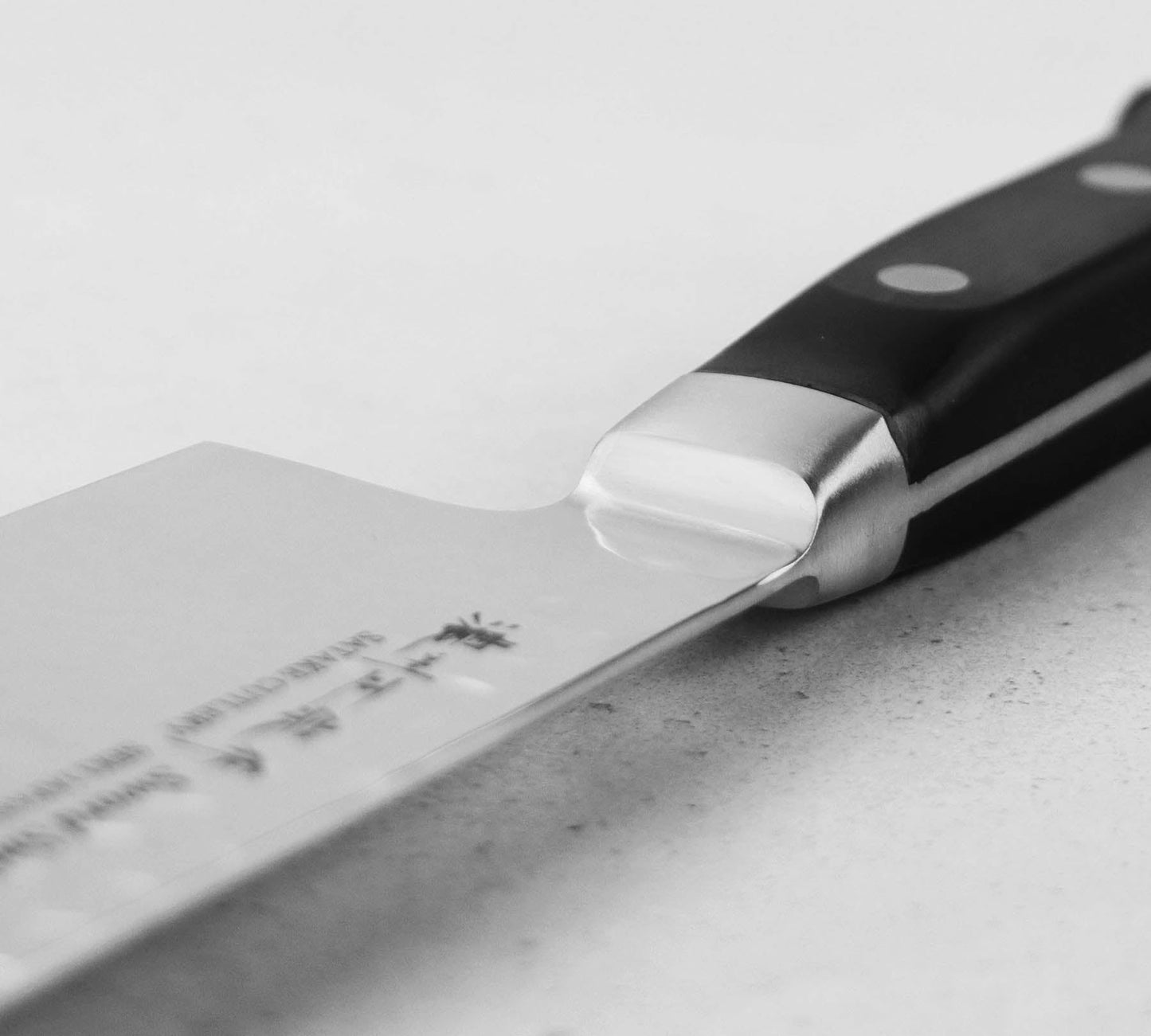 Obdélníková čepel je určena pro krájení zeleniny a bylinek a usnadňuje manipulaci s krájenými surovinami. Rovná řezná hrana umožňuje vertikální krájení a umožňuje různé techniky, jako je julienne a chiffonade.
