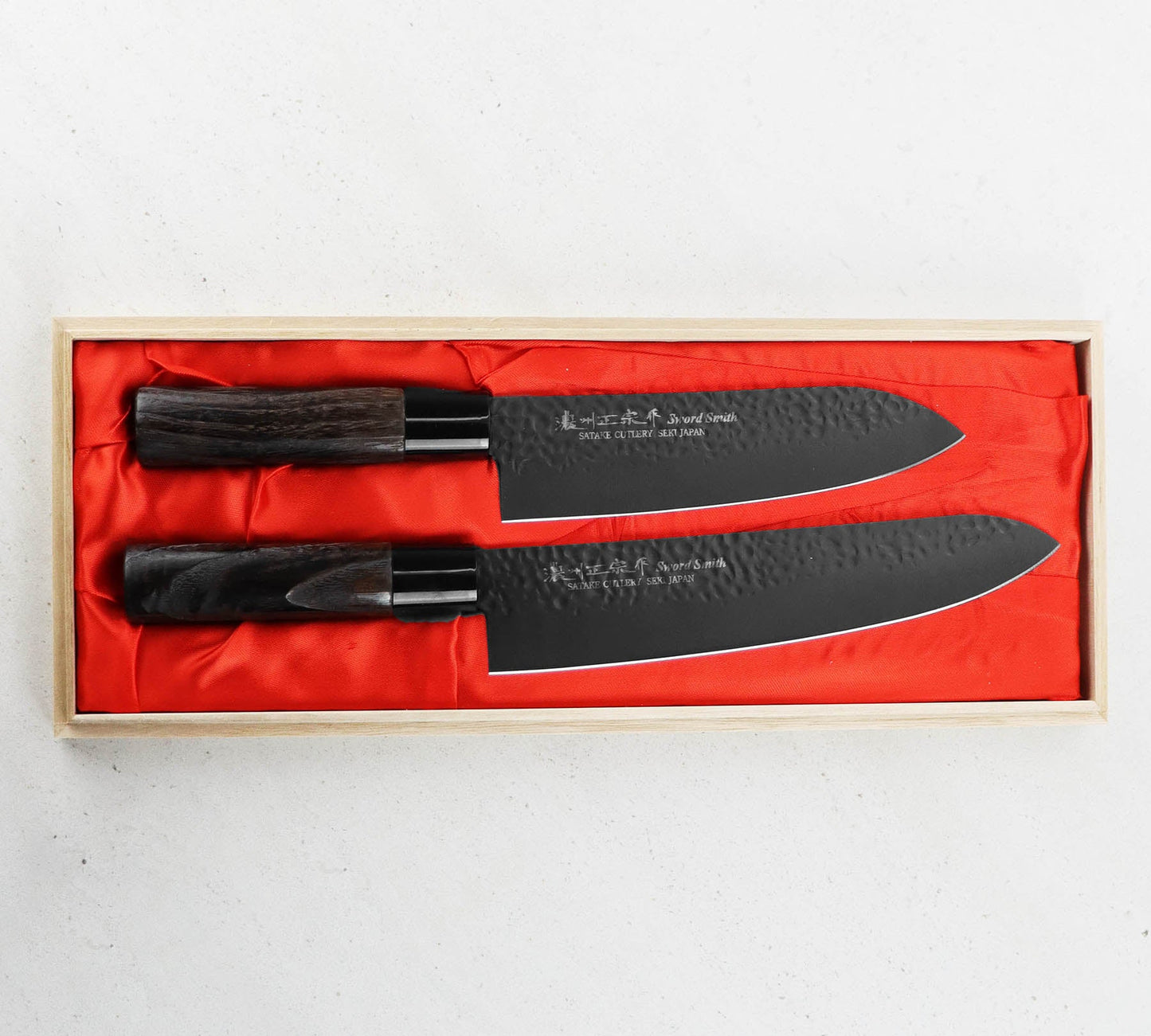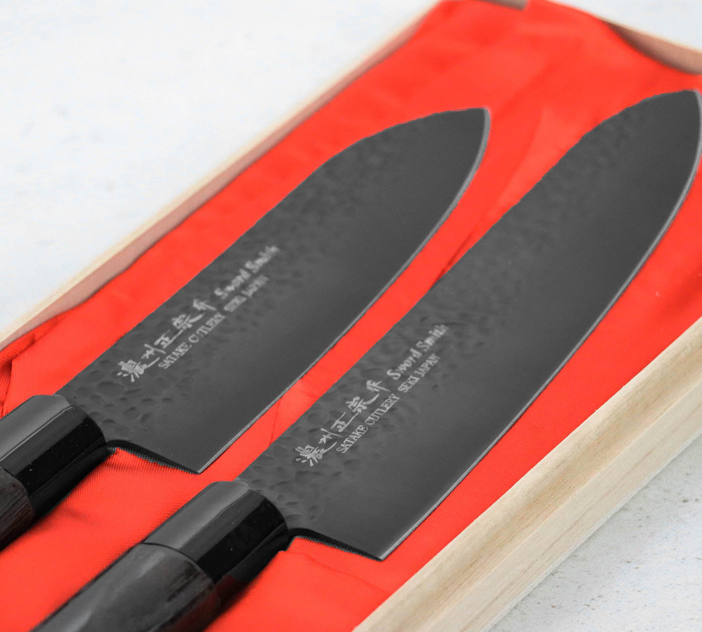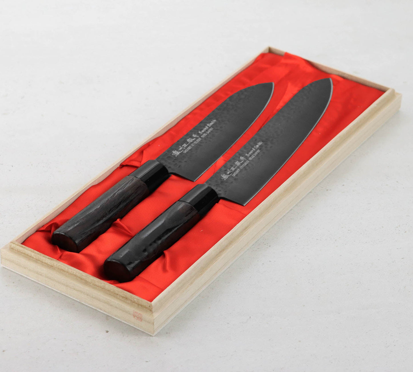 Masamune Tsuhime Black Wooden Box Set Šéfkuchařský nůž + Santoku