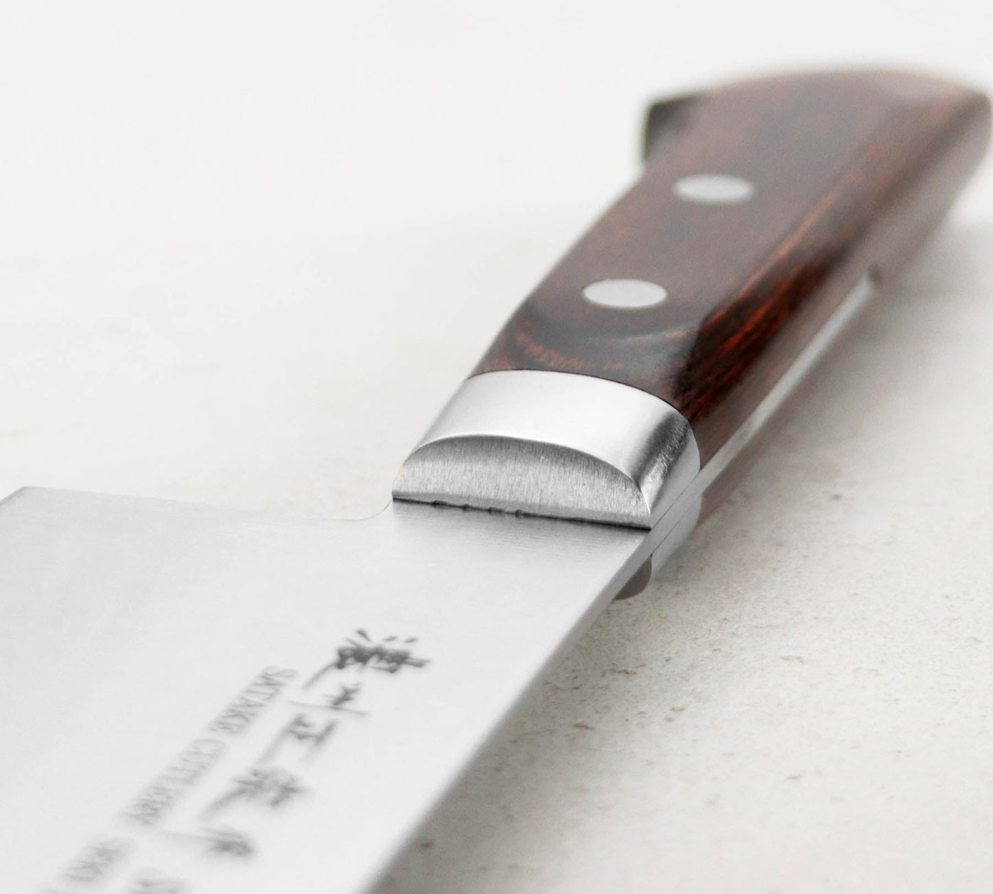 - Čepel: třívrstvá ocel, jádro z nerezové oceli Shirogami #2