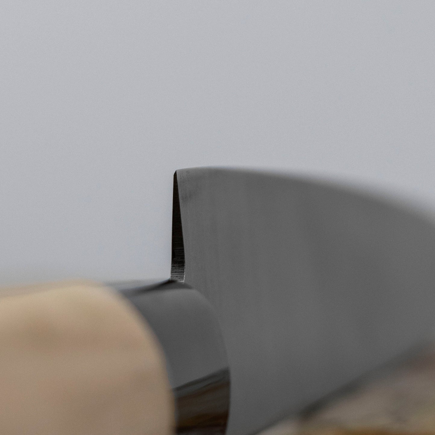 Představujeme tradiční japonský nůž Masamune, jehož hlavním účelem je příprava sushi, rybího carpaccia a pokrmů s jemnými ingrediencemi. Dlouhá, úzká a pevná čepel zajišťuje přesnost při krájení, zatímco rovnoměrné broušení zajišťuje čistý řez.
