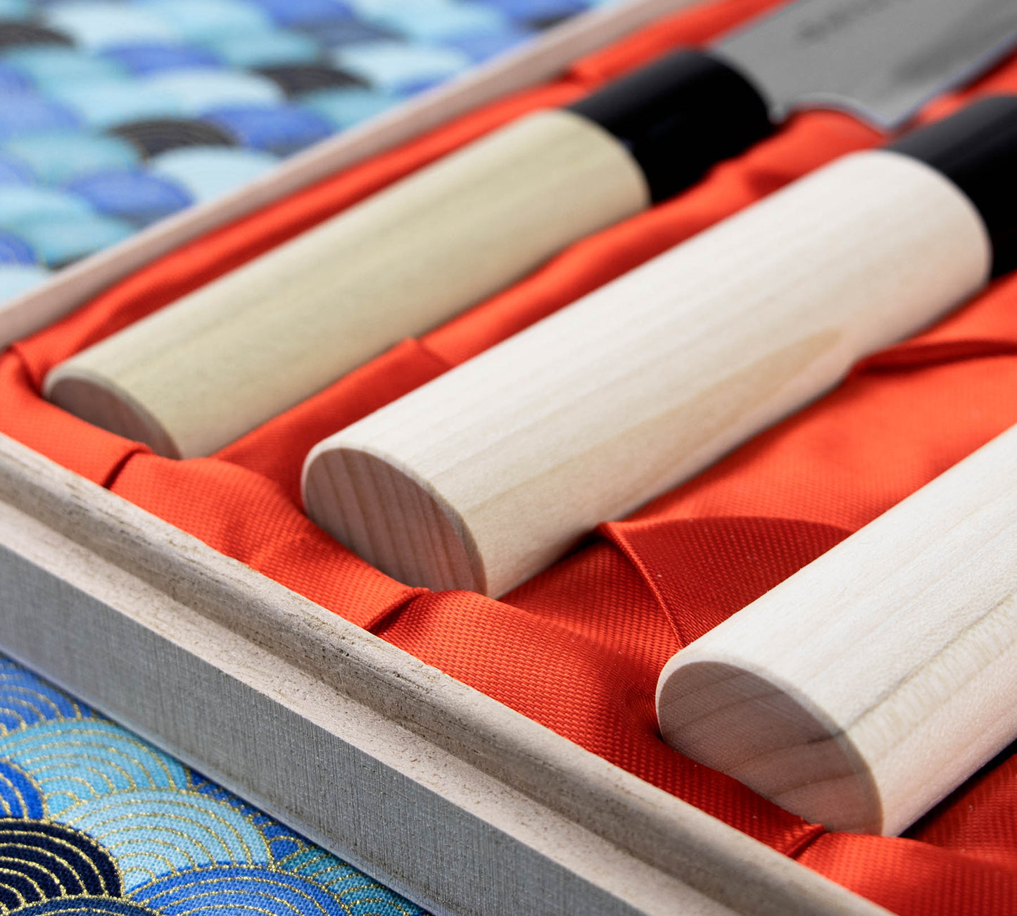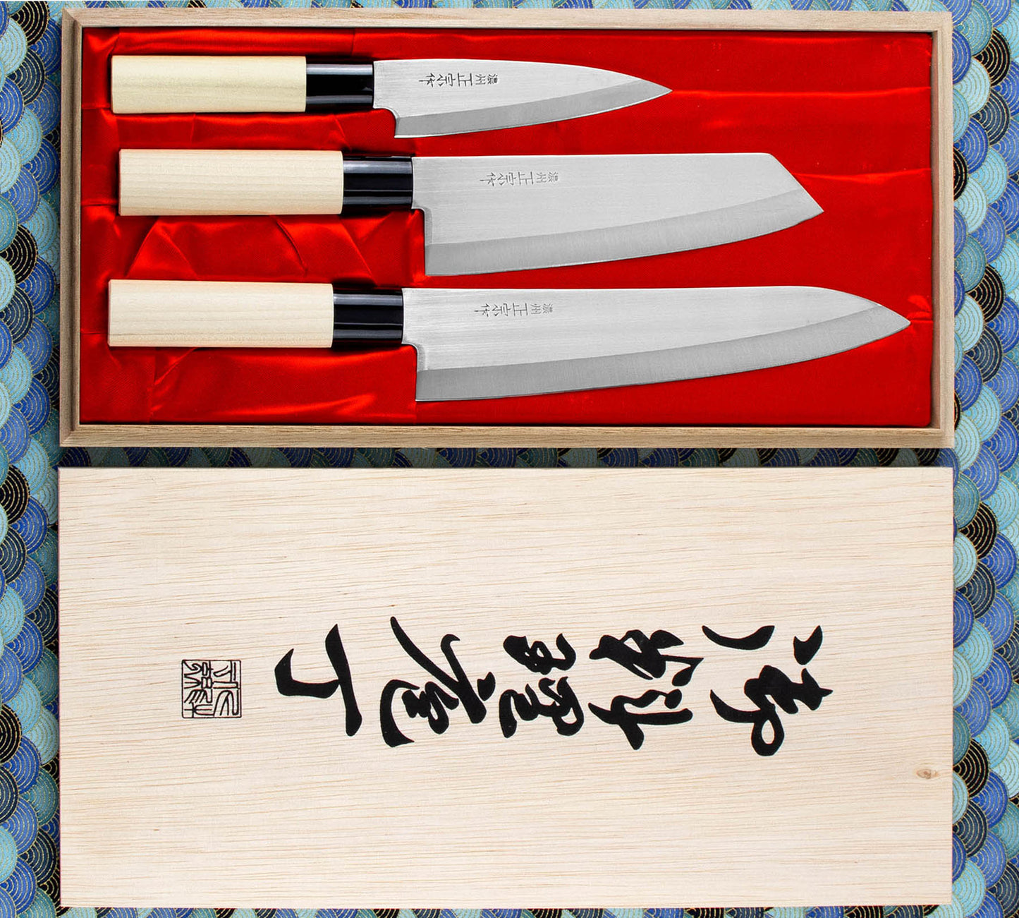Sada 3 kuchyňských nožů Masamune Megumi v dřevěné krabičce